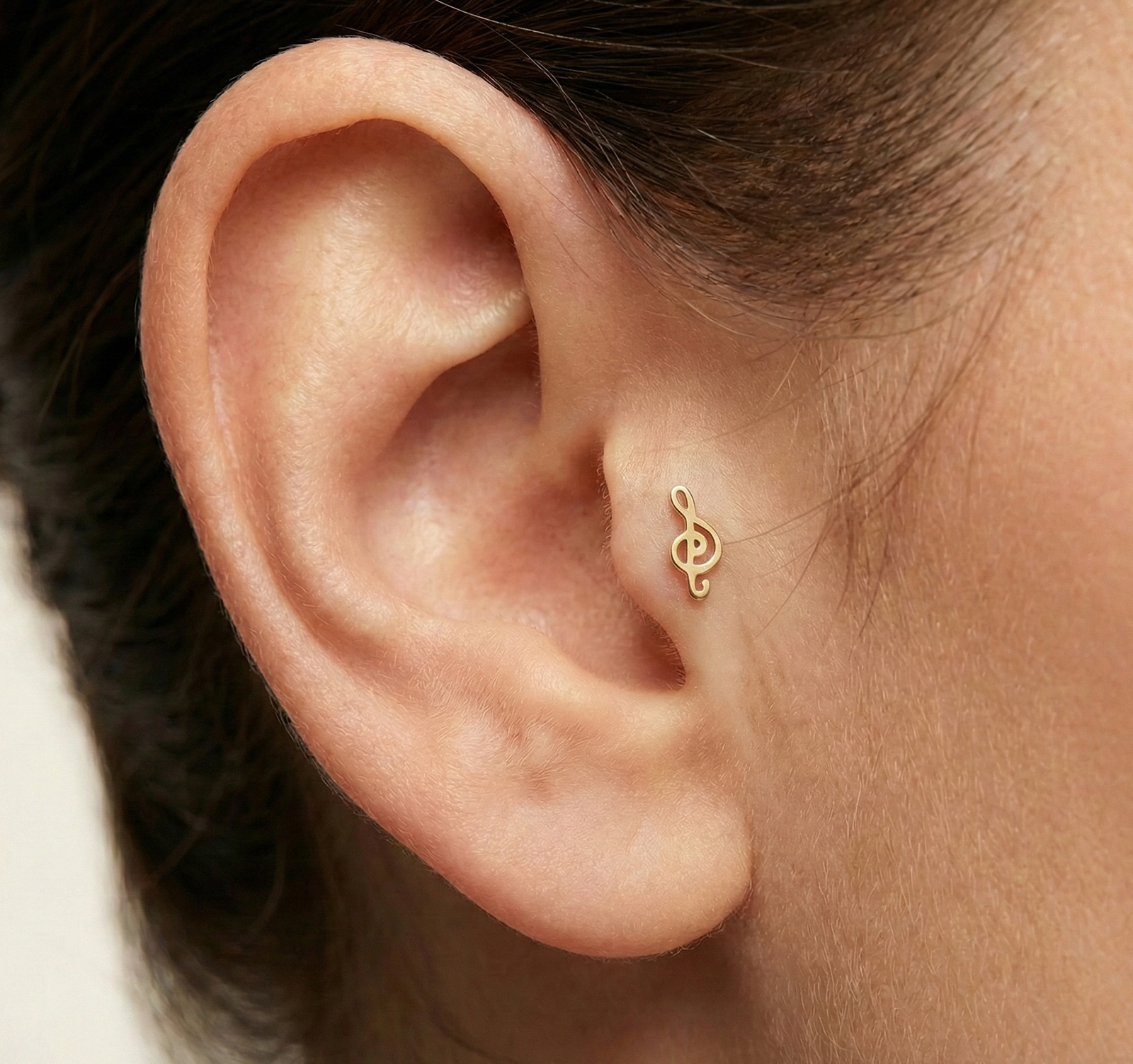 Hayatın akışına eşlik eden zarif bir melodi. Golden Rhythm, müziğin en zarif sembolü olan Sol Anahtarı’nı, pürüzsüz altın (gold) dokusuyla ve formun gücüne odaklanarak sunuyor. Taşsız, akıcı ve kıvrımlı tasarımıyla kulağınızda (tragus, helix veya lobe) sanki dans ediyormuş gibi zarif bir hareketlilik yaratır. Müziği sadece dinleyenler değil, ruhunda hissedenler için tasarlandı.