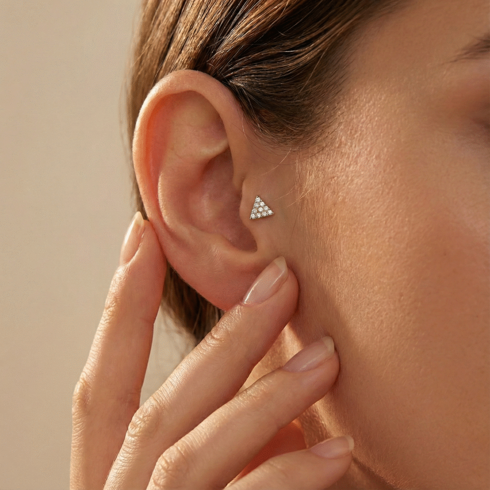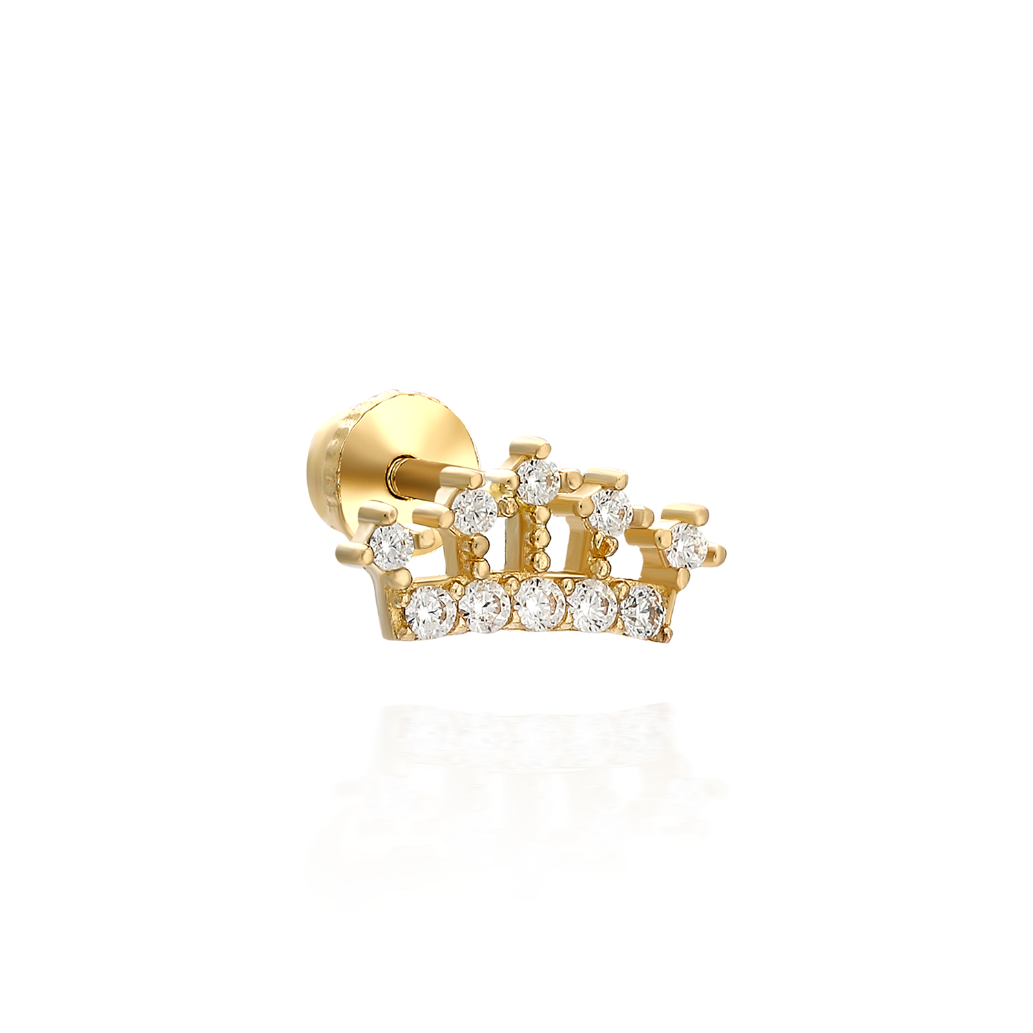 Kişisel stil koleksiyonunuzun zirvesi. Crown Jewel, asil bir taca (tiara) şekil veren, sarı altının sıcak ışıltısıyla hazırlanmış iddialı bir tasarım sunar. Tacın tabanı ve uç noktaları, ışığı mükemmel bir şekilde yansıtan parlak, yuvarlak kesim taşlarla cömertçe bezenmiştir, bu da ona gerçek bir mücevher ağırlığı katar. Helix, flat veya kulak memesinde (lobe) başrolü oynamak için tasarlanan bu parça, sadece bir piercing değil, kulağınızdaki saltanatın ilanıdır.