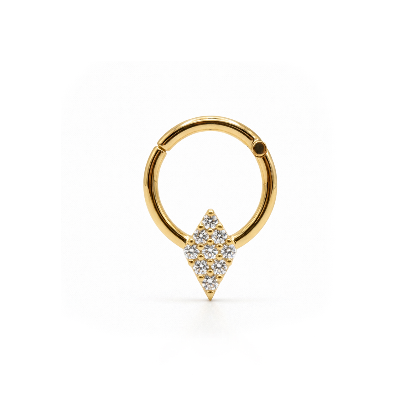 Diamond Prism, sıradan dairesel formların ötesine geçerek stilinize keskin ve modern bir boyut kazandırıyor. Işığı her açıdan yakalamak için ustaca dizilmiş taşları ve aşağı doğru süzülen ikonik prizma formuyla, modern mimariden ilham alan bir duruş sergiliyor. Hem cesur hem de zarif; ışığınızı tek bir odak noktasında toplayın.