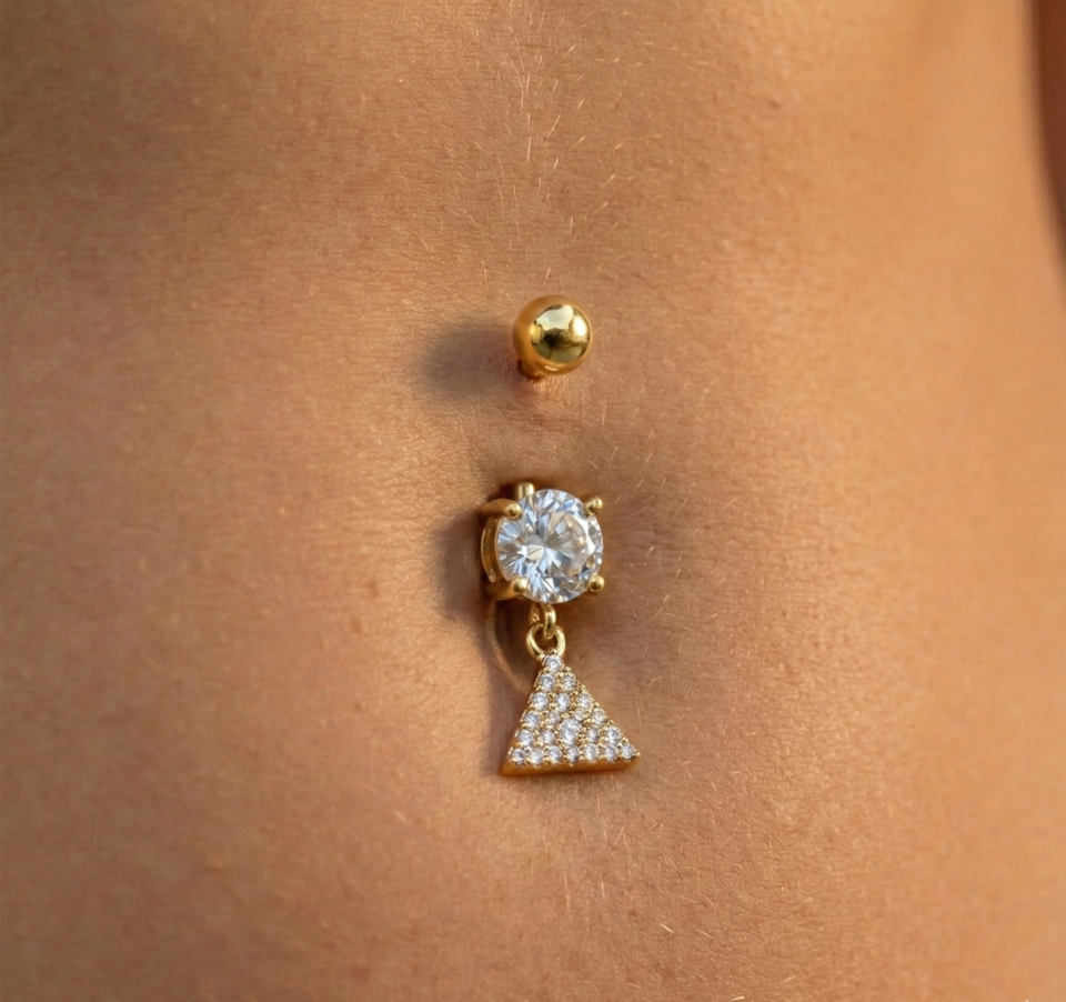 Merkezdeki göz alıcı kristal taşın ışıltısı, kelebek kanatlarındaki minimal taş detaylarıyla tamamlanarak derinlikli bir görünüm sunar. Araz Piercing atölyelerinde özenle işlenen bu model, altın renginin sıcaklığını ve modern tasarımın ferahlığını bir arada taşıyor. Hem günlük stilinize ışıltı katmak hem de özel anlarda fark yaratmak için tasarlandı.